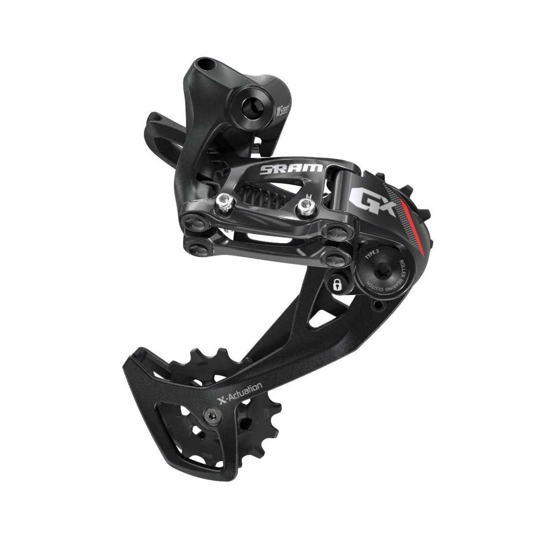 Avec la technologie CAGE LOCK™ au niveau du dérailleur arrière, le retrait et l’installation des roues, ainsi que l’installation de la chaîne, sont plus simples et plus rapides. Il suffit de pousser la cage vers l’avant pour créer du mou puis de la bloquer en place. Spécialement conçu pour SRAM 1X, X-ACTUATION assure un changement de vitesses précis et régulier sur toute la cassette 10 à 42 dents.Les dérailleurs arrière ROLLER BEARING CLUTCH™ offrent une stabilité maximale de la transmission, même sur les terrains les plus exigeants. La technologie ROLLER BEARING CLUTCH™ supprime le rebond du dérailleur et empêche que la chaîne ne tape trop souvent, sans pour autant sacrifier la précision.