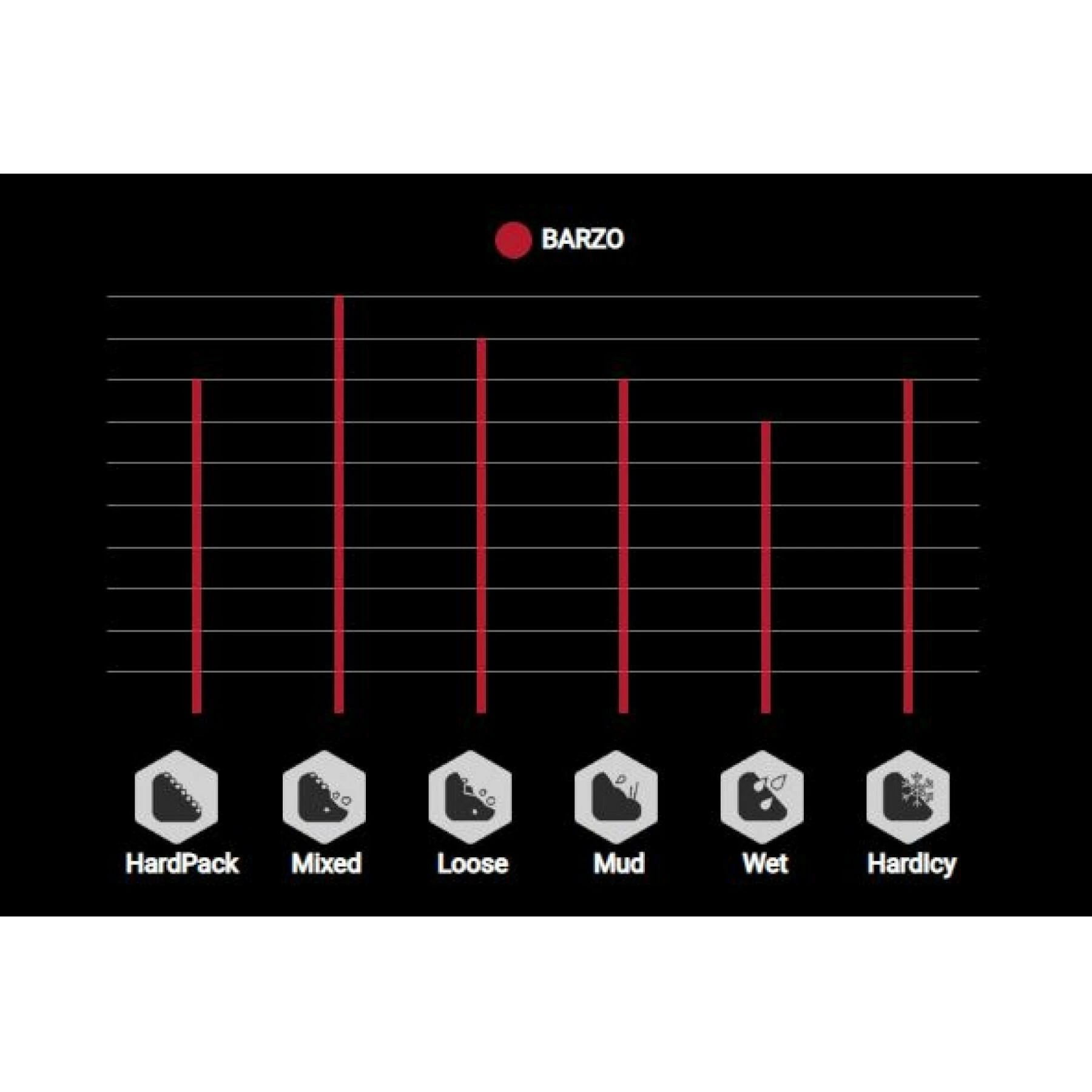 Le Vittoria Barzo est le pneu idĂ©al lorsque le terrain devient plus technique (racines, rochers humides) c’est d’ailleurs le choix du vainqueur de la BC Bike Race. Le Barzo est dotĂ© d’une bande de roulement Ă crampons Ă lamelles progressifs espacĂ©s en forme de V afin d’offrir de l’adhĂ©rence mĂŞme lorsque le choix de la trace devient compliquĂ©.