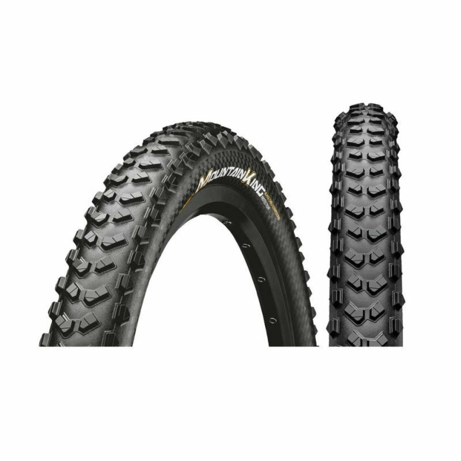 CONTINENTAL Mountain King 2.3 Parfait compagnon de vos sorties dotĂ© d’un grip exceptionnel.En toute sĂ©curitĂ© en terrain montagneux et aussi Ă Touren-Mountainbike.les pavĂ©s mĂ©dians apportent le mordant et les pavĂ©s latĂ©raux offrent un grip maximal en courbes.